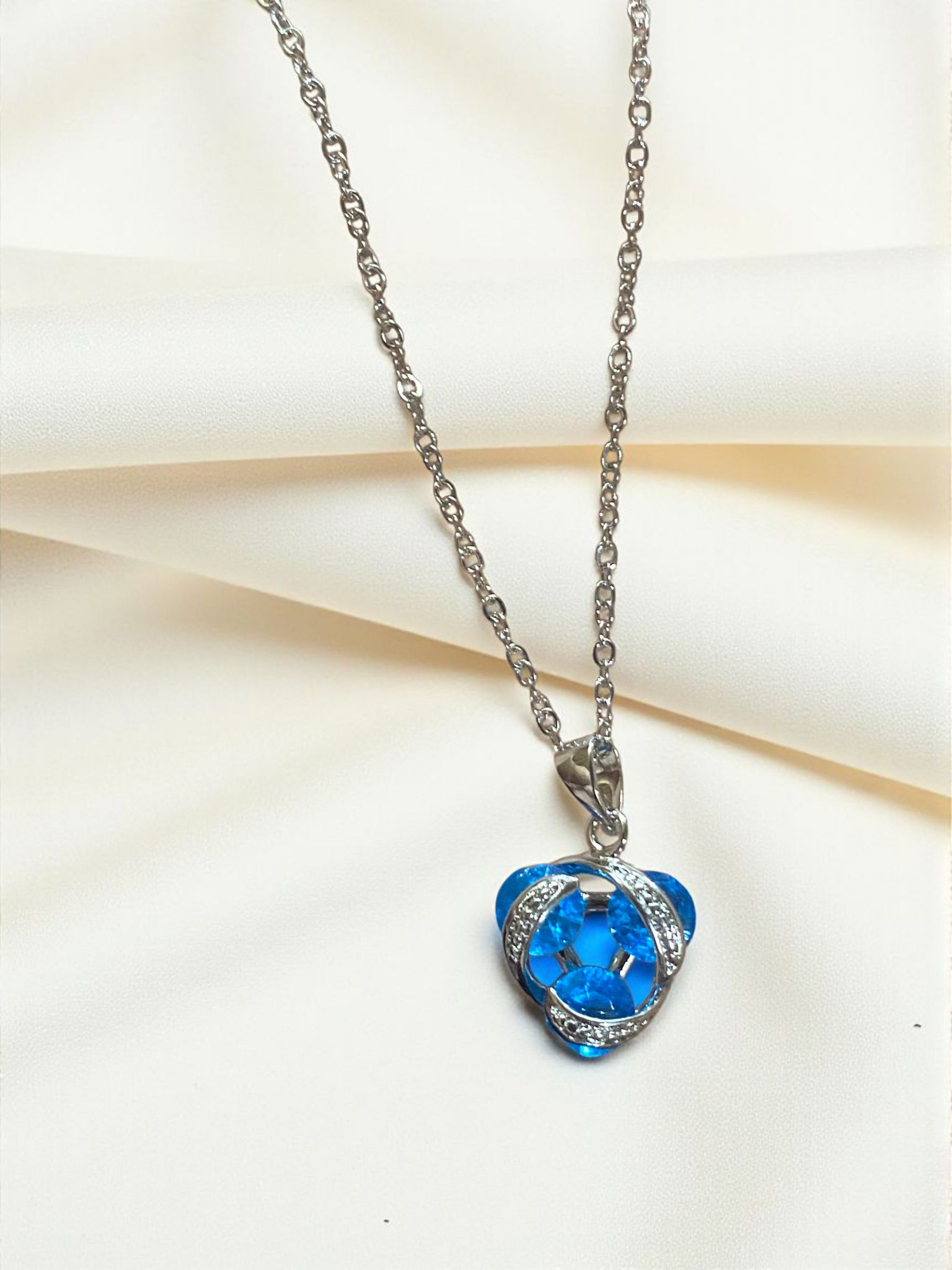 Blue Crystal Swirl Pendant Necklace – Silver Finish