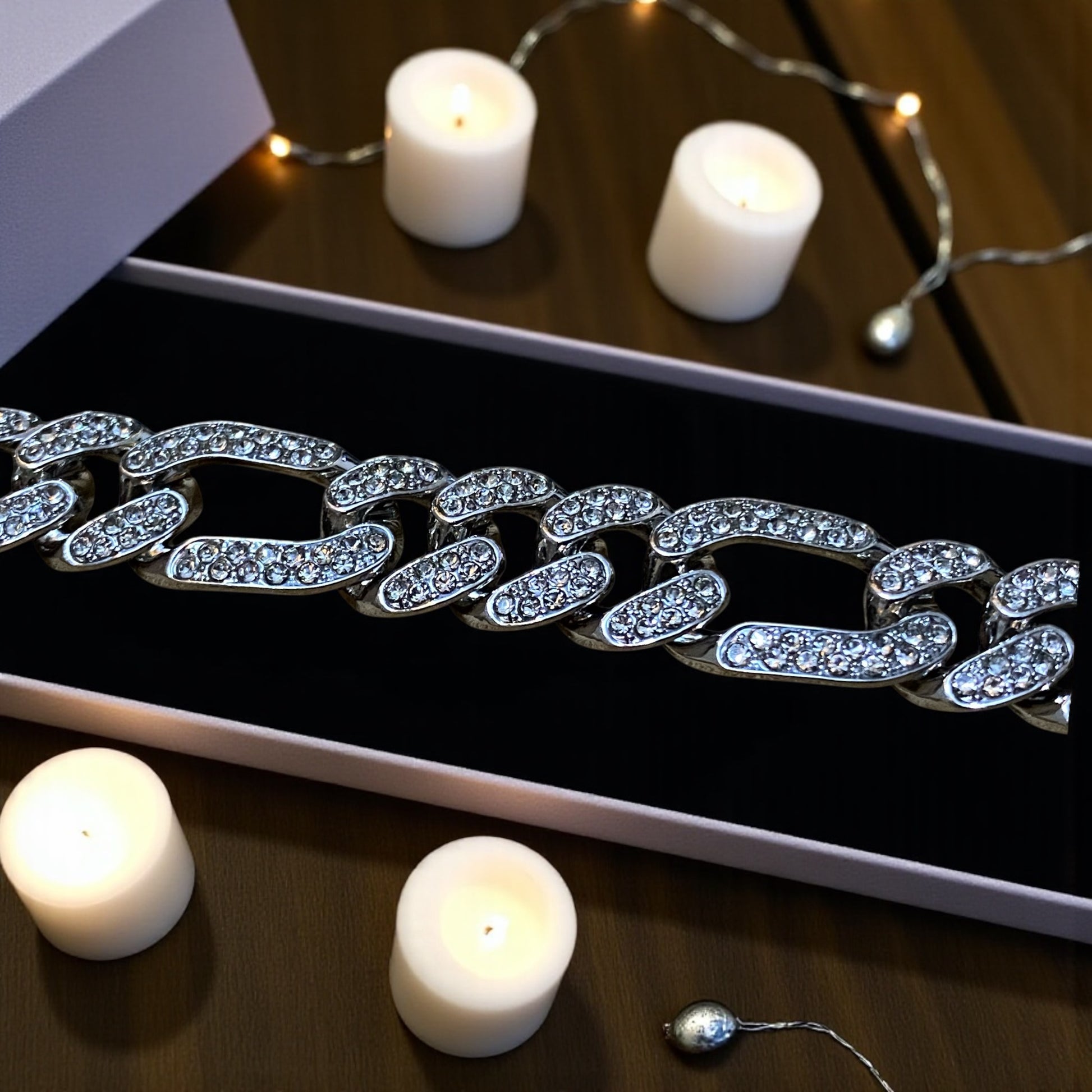 Turn up your style with this Cuban Link Bracelet, crafted for bold energy and everyday flex. Each link is fully encrusted with high-shine stones that catch light from every angle. Made with premium alloy and finished in rhodium plating, it’s non-tarnish, skin-friendly, and built to last. The secure box clasp locks in that luxury feel, making it perfect for stacking or wearing solo.