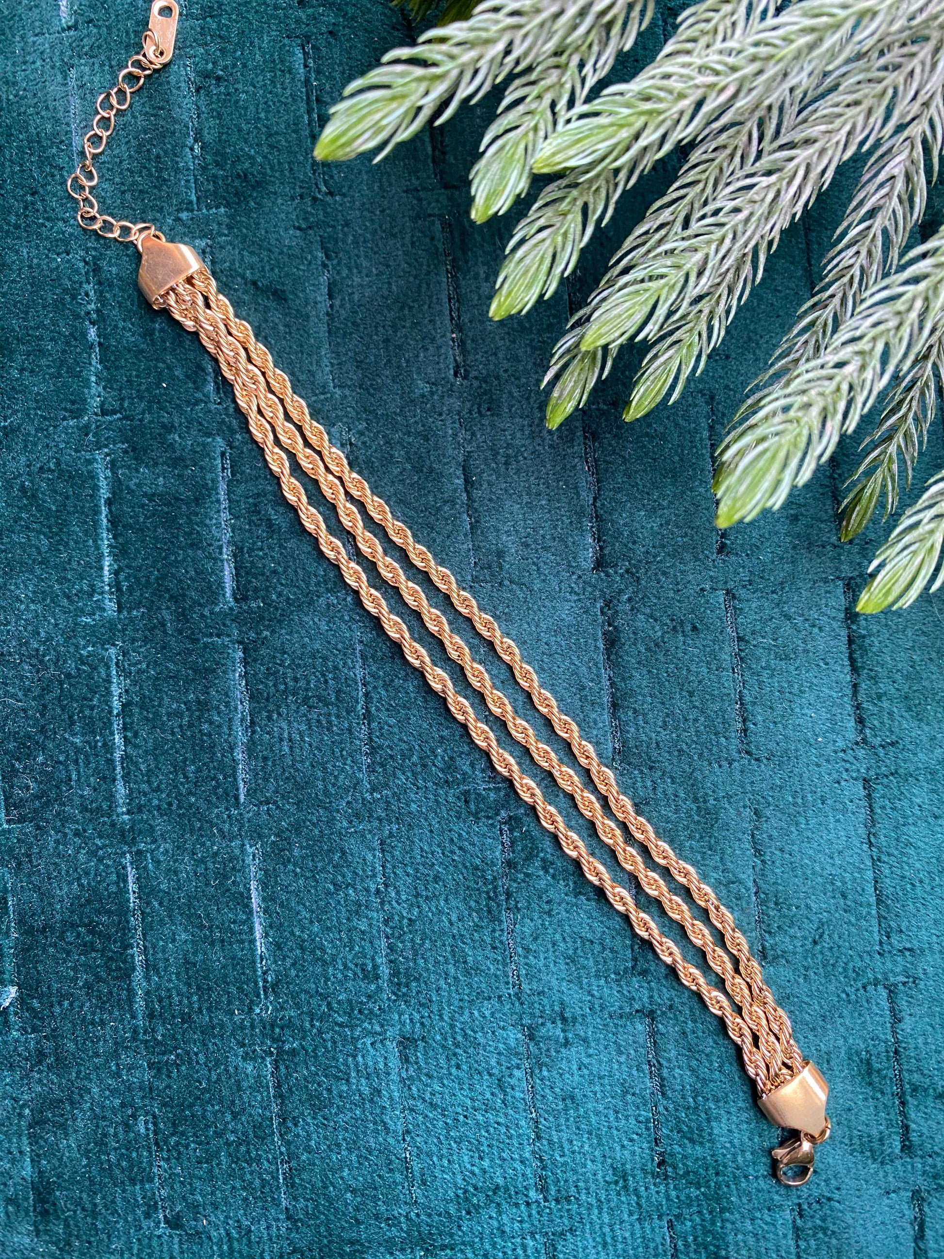 A classic twisted rope chain with a warm gold finishing. Clean, minimal, and super easy to style. Perfect for everyday wear or layering with your favorite pieces.