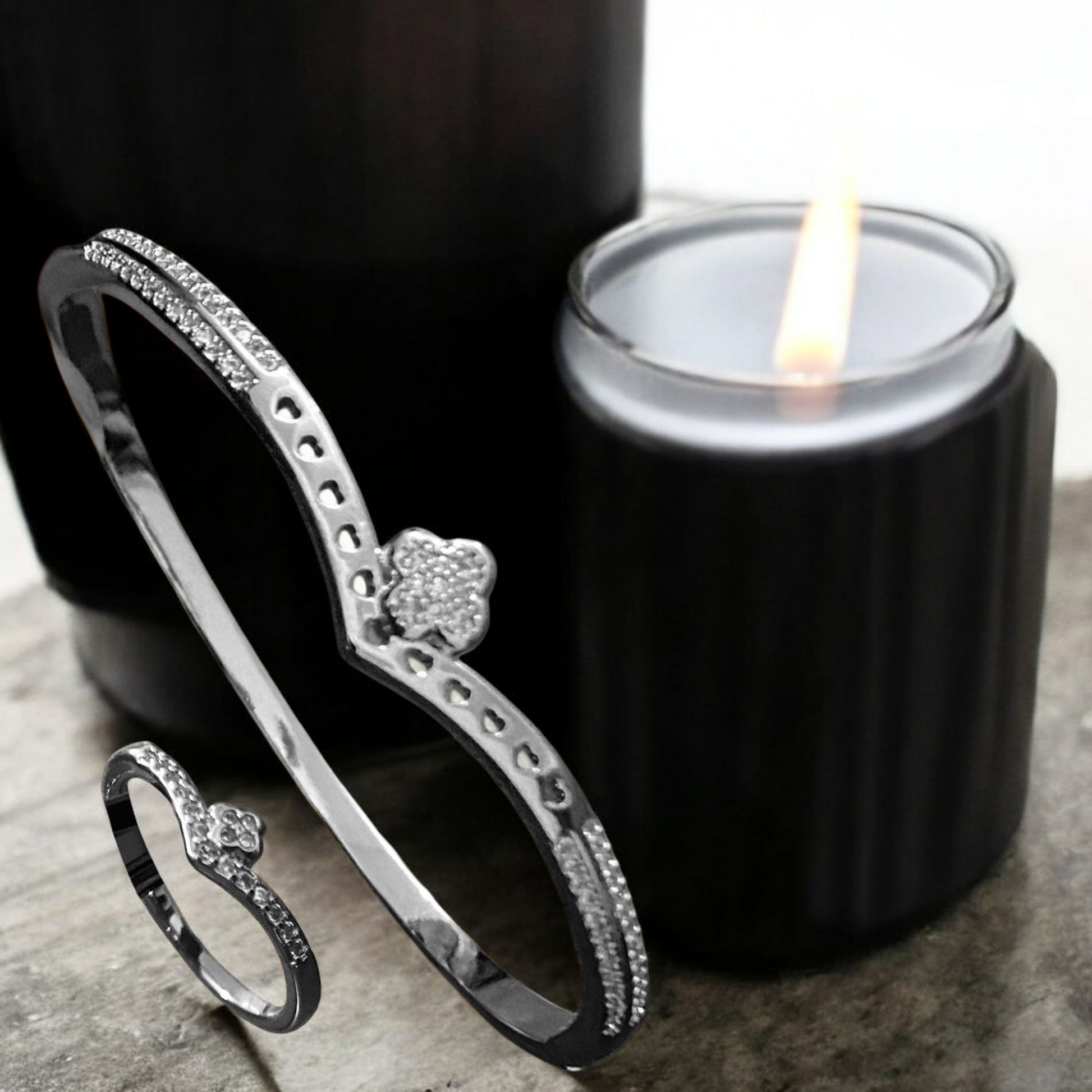 Silver Heart Crown Bangle