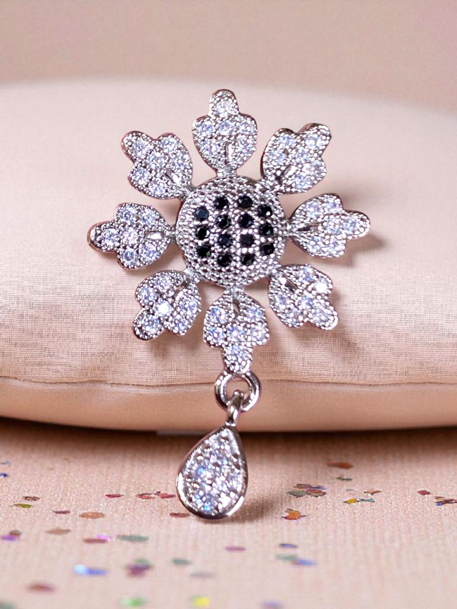 Radiate charm and elegance with the Snowflake crystalShine Set — a delicate floral design brought to life with shimmering white crystals and striking black accents. Featuring a snowflake-inspired motif and teardrop crystal dangle.